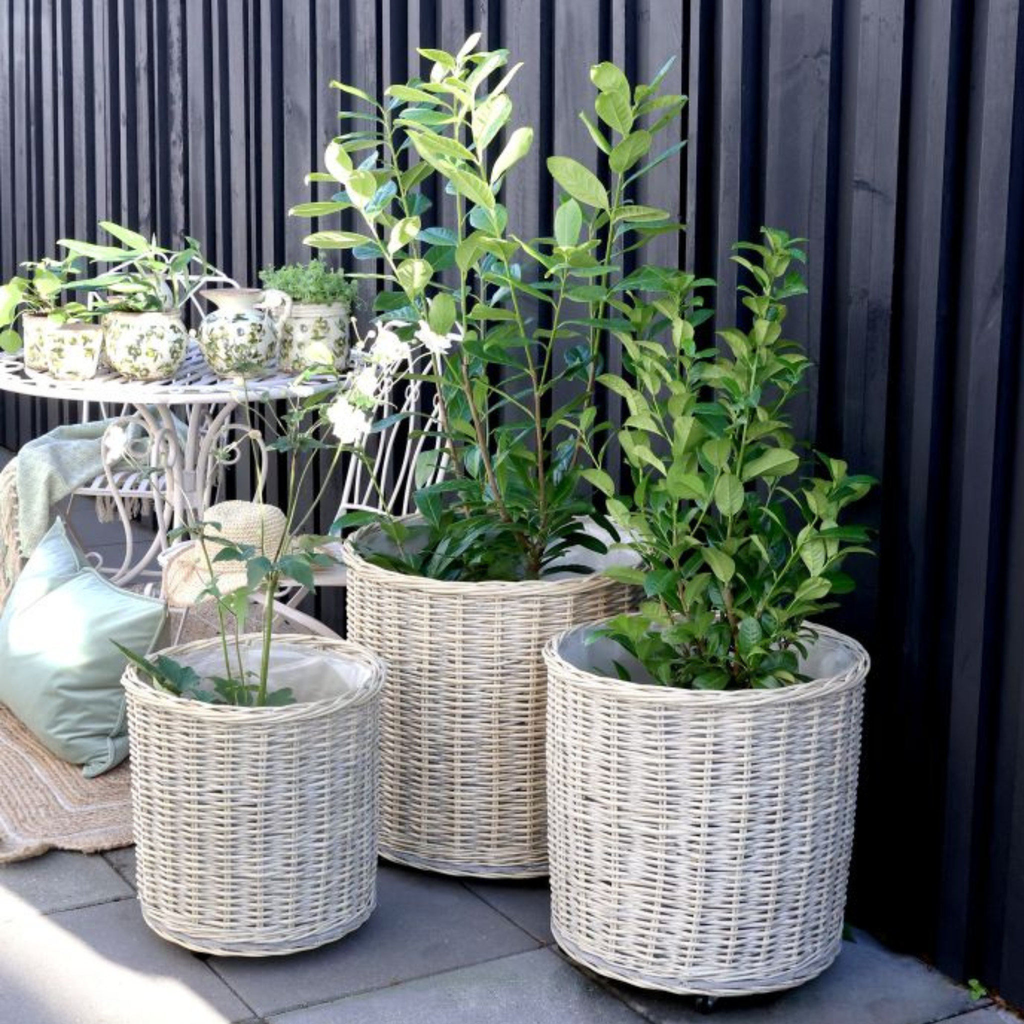 Kurvene er foret med plast indvendigt, hvilket gør dem ideelle til grønne planter. Brug dem til at fremhæve dine yndlingsplanter eller som dekorativ opbevaring til tæpper, sko eller legetøj.