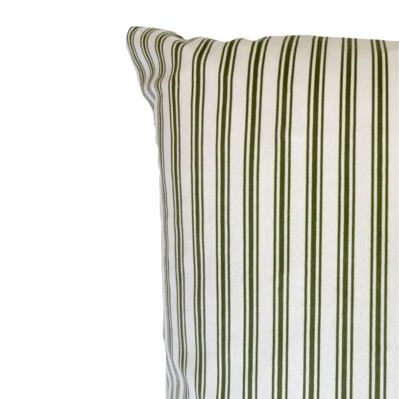 Dette pudebetræk i blød velour med elegante grønne striber er det perfekte supplement til dine eksisterende puder. Det tilføjer både farve og tekstur, og skaber en hyggelig og stilfuld stemning i hjemmet.