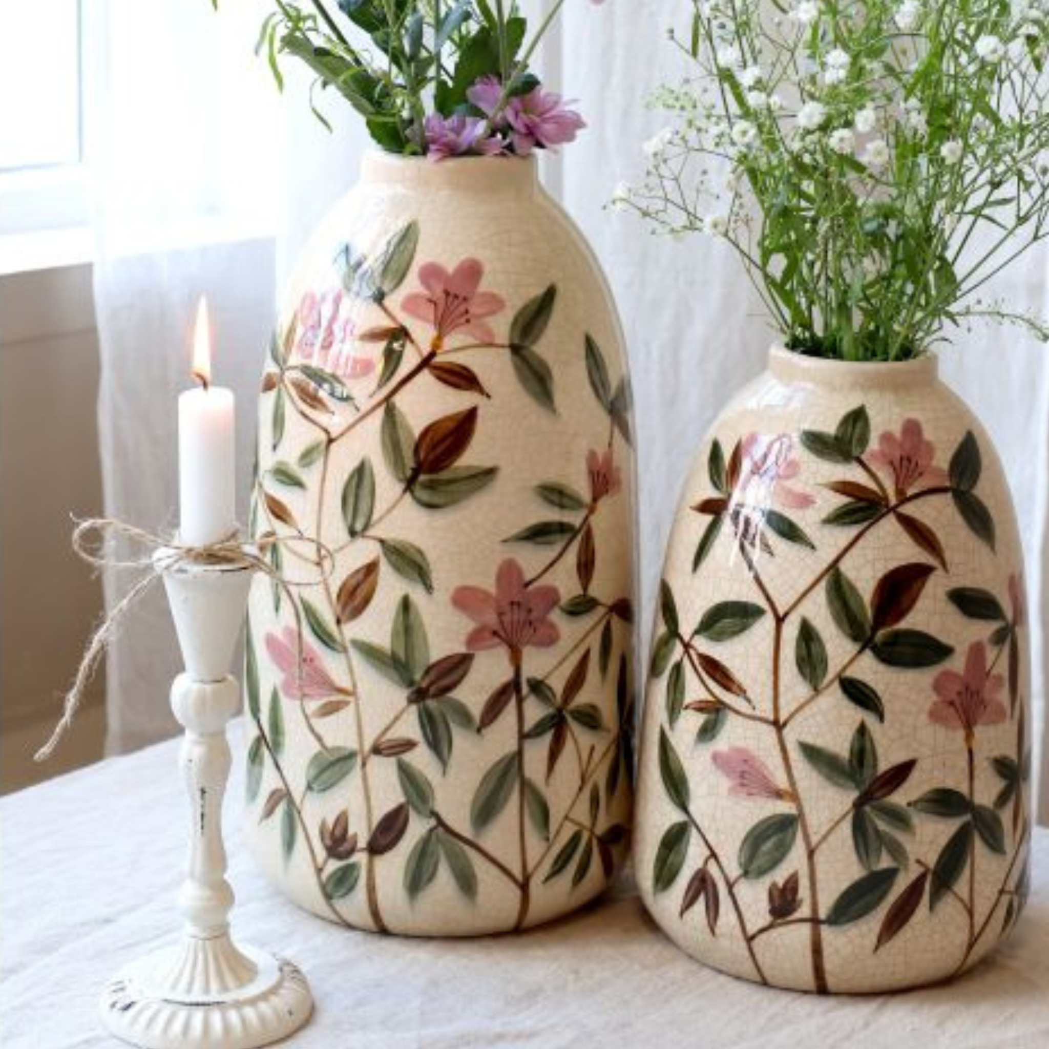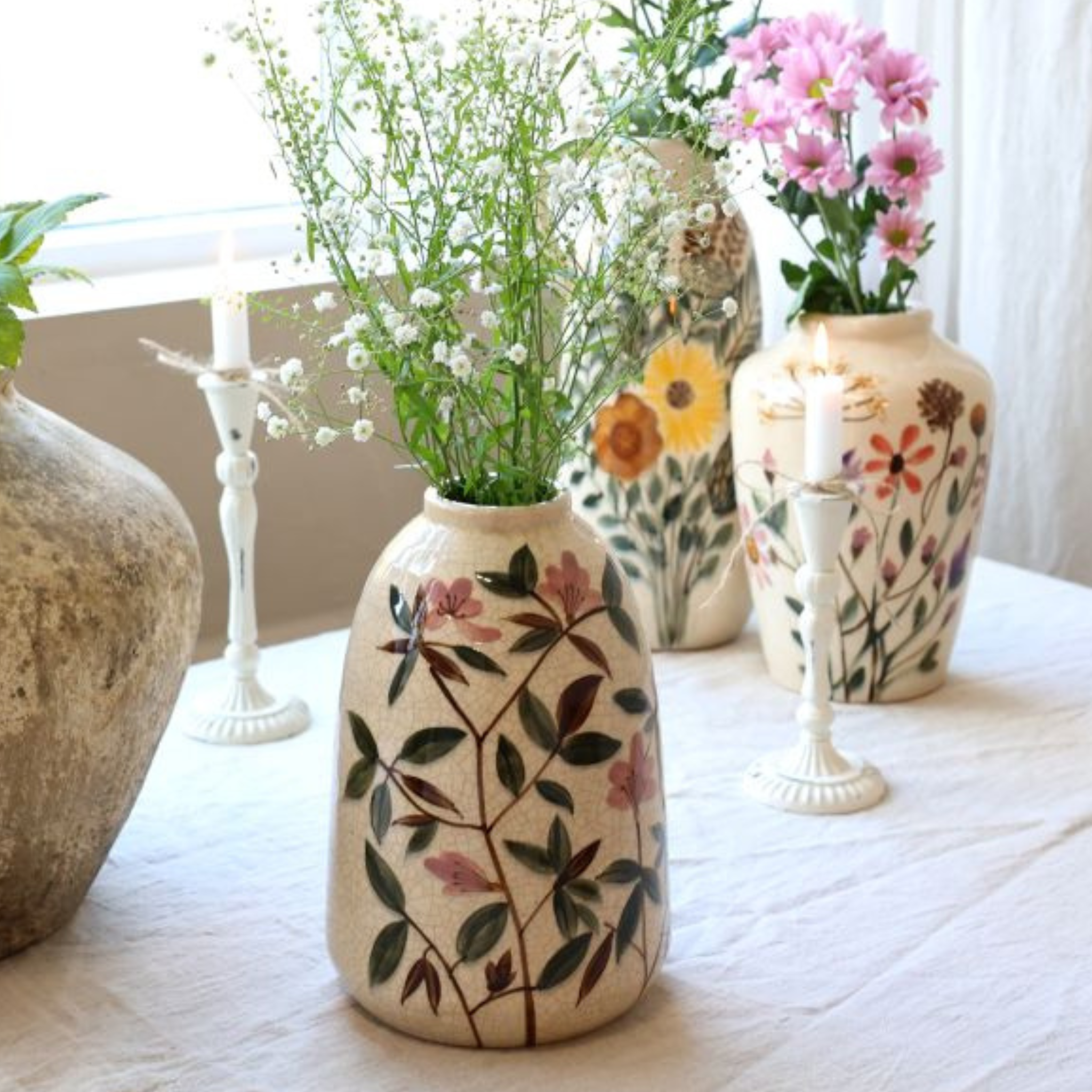 Vase med blomstermotiv - Flere størrelser - Chic Antique
