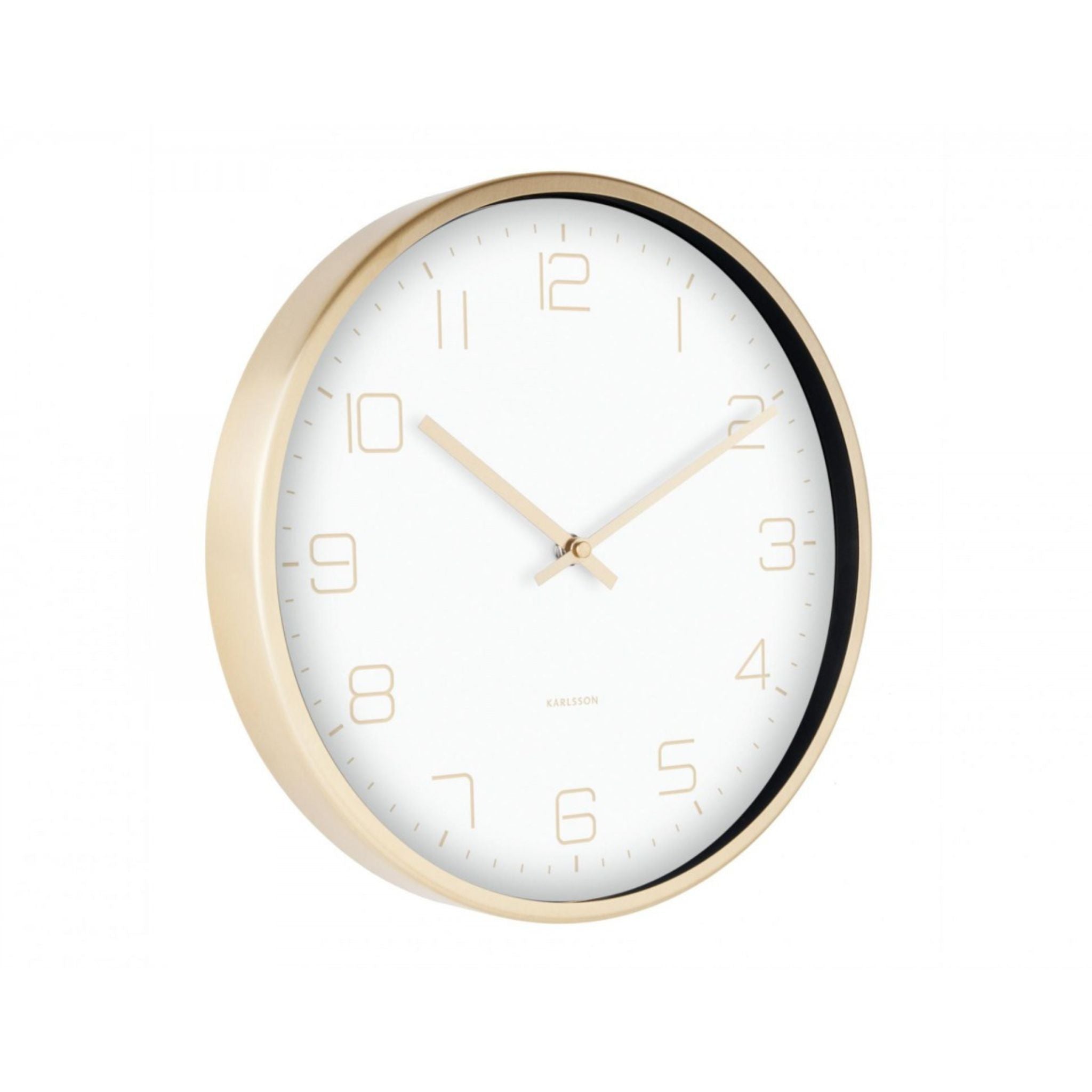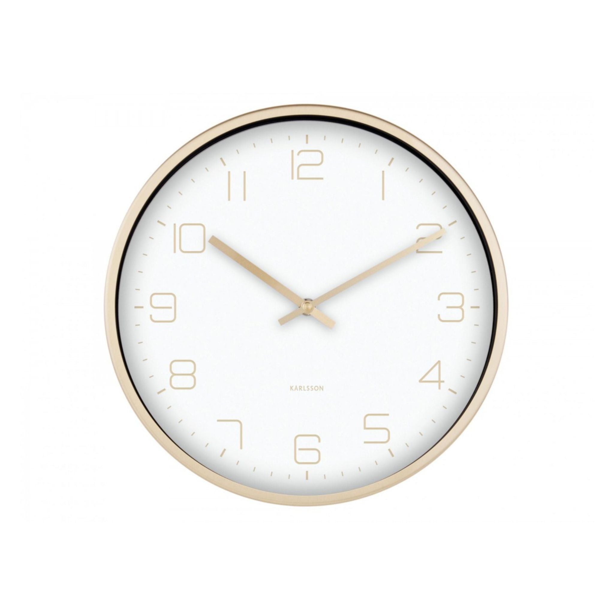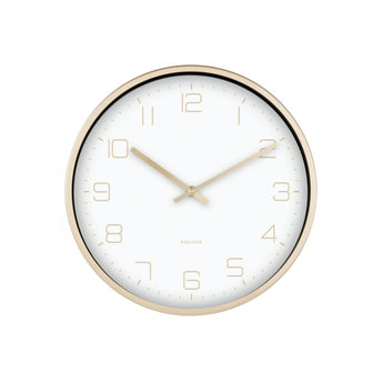 Dette smukke vægur fra Karlsson kombinerer enkelthed og elegance i et tidsløst design. Uret har en hvid urskive med diskrete tal og visere i en matchende gylden finish, der går igen med den smukke ramme på uret.