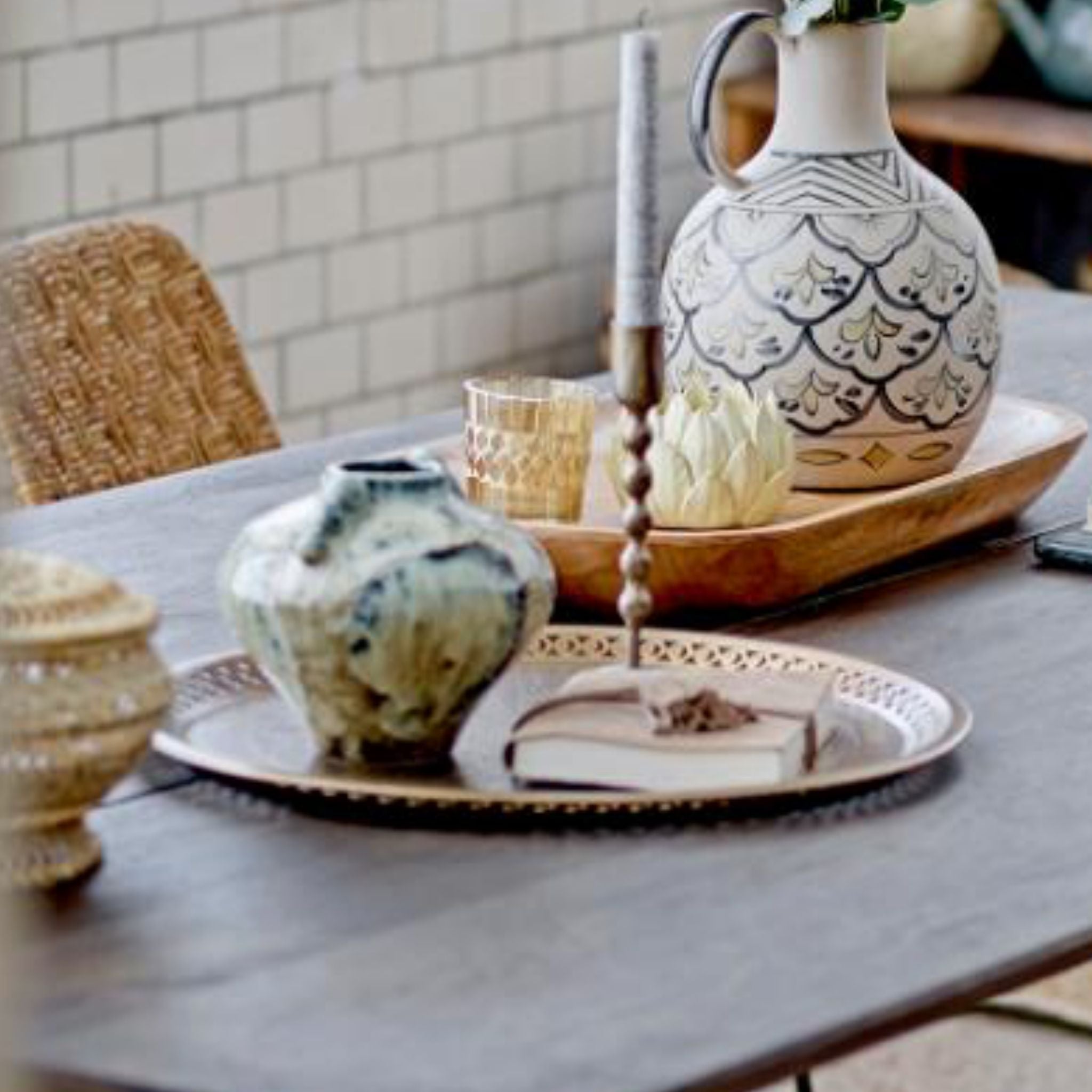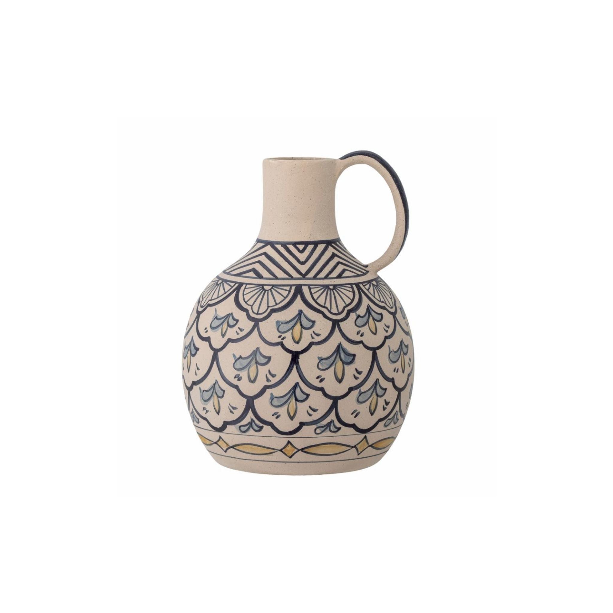 Nadya vasen fra Bloomingville er lavet i smukt stentøj med blå nuancer, der tilfører et roligt og stilfuldt udtryk til enhver indretning. Vasen har et organisk, elegant design med en rund hank og et dekorativt mønster, der gør den til et dekorativt blikfang.