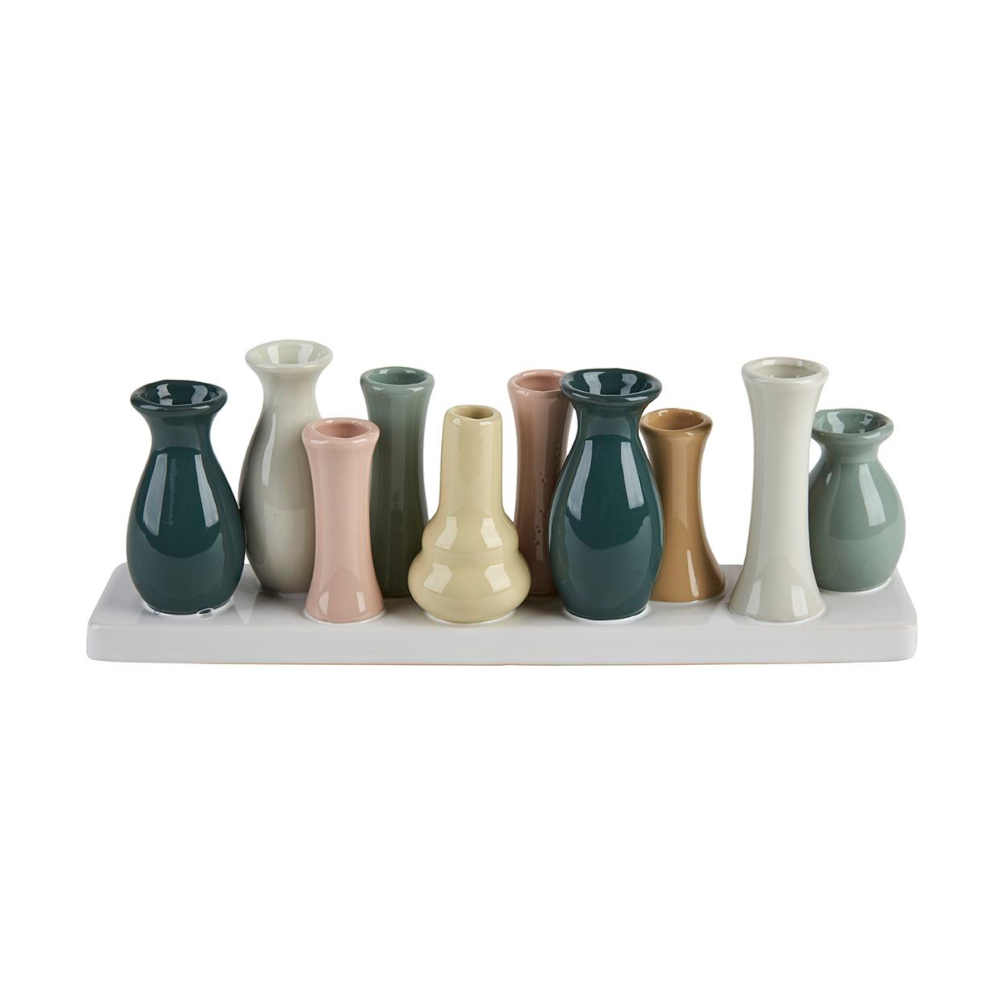 Søde og dekorative vaser samlet på et fad i forskellige dæmpet farver fra 2Have.