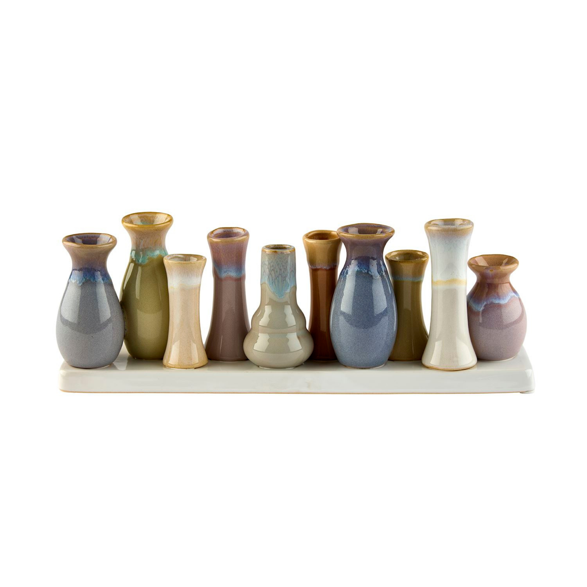 Søde og dekorative vaser samlet på et fad i forskellige pastelfarver fra 2Have.