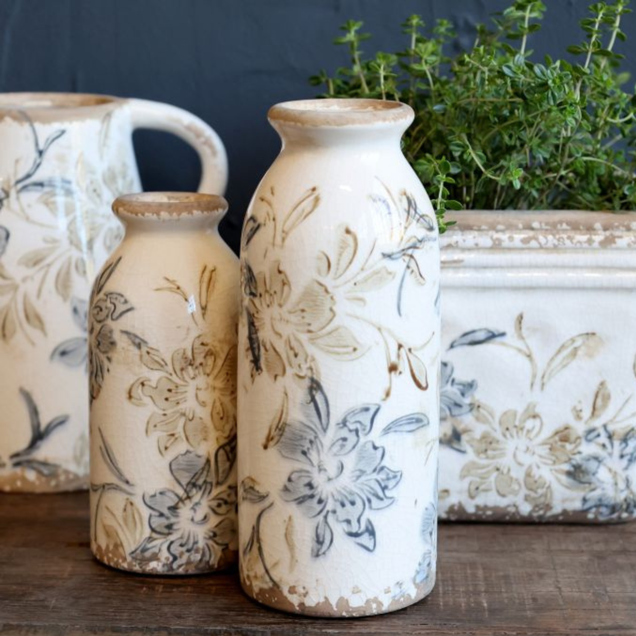 Flaske med blomstermotiv - Flere størrelser - Chic Antique