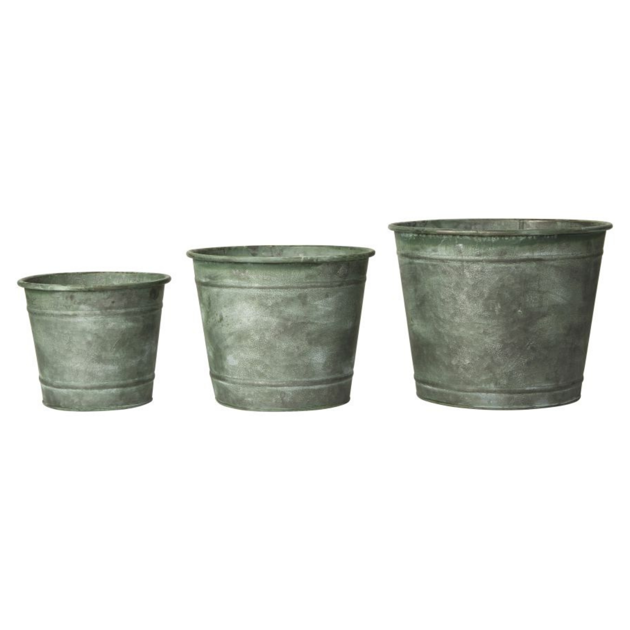 Flot zink krukke sæt med tre størrelser i flot antik grøn farve. Lav din egen hyggekrog i haven, terrassen, sommerhuset eller udestuen med disse skønne grønne zink krukker.