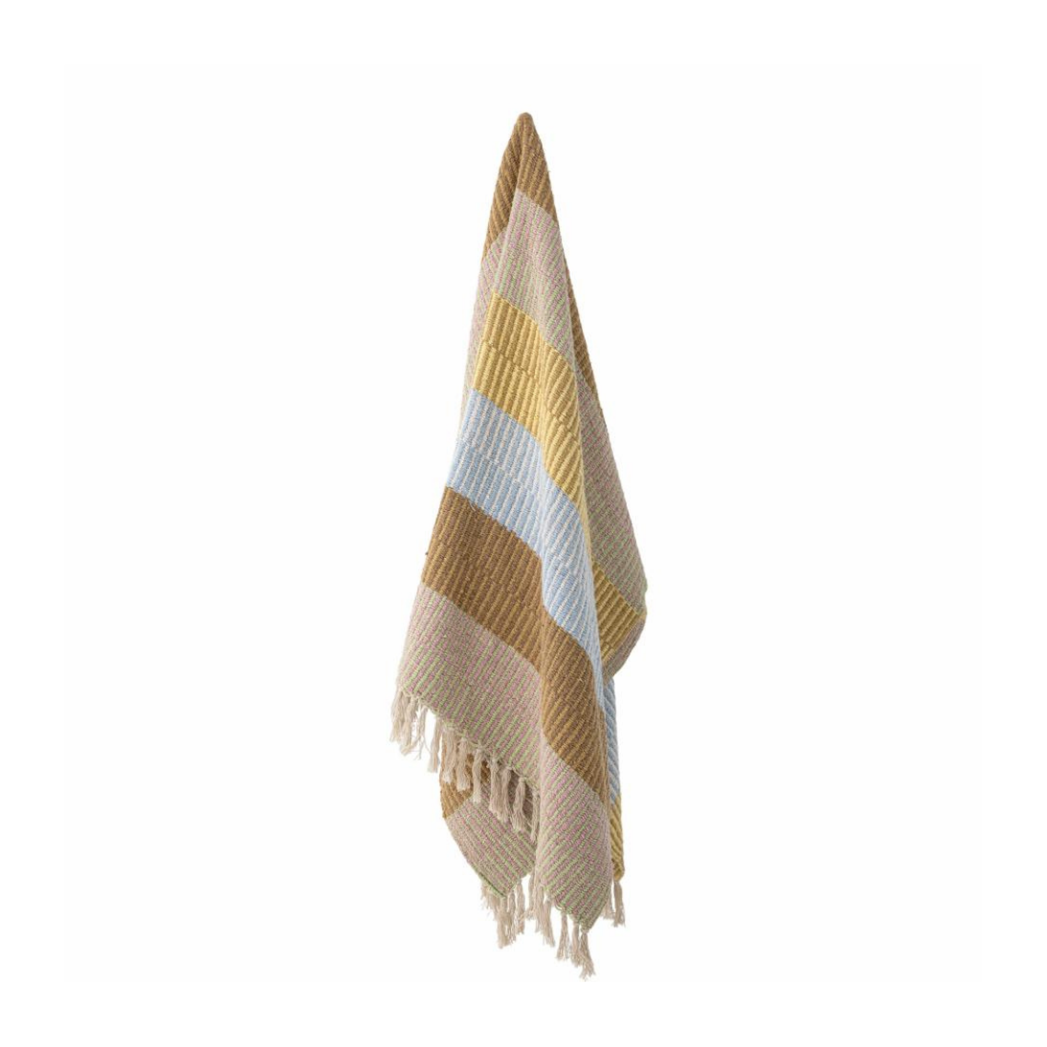 Isnel Plaiden fra Creative Collection er den perfekte tilføjelse til dit hjem, hvis du ønsker at kombinere komfort med bæredygtighed. Fremstillet af genanvendt bomuld, byder denne plaid på en fantastisk blanding af lyseblå, beige, brun og gul i smukke striber, der skaber et indbydende og livligt udtryk.