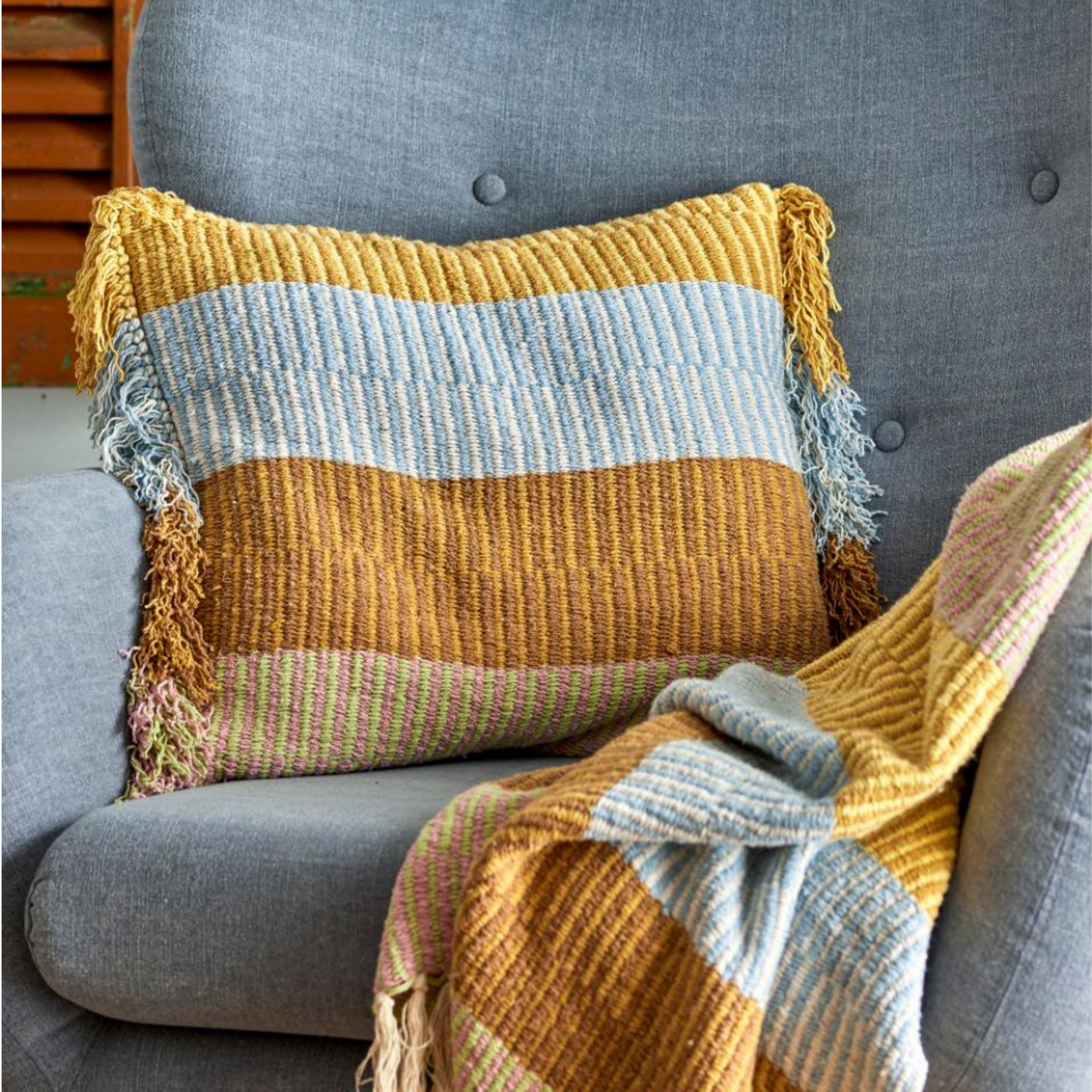 Vælg Isnel Plaiden for et stilfuldt og bæredygtigt valg, der bringer farve og hygge ind i dit hjem!