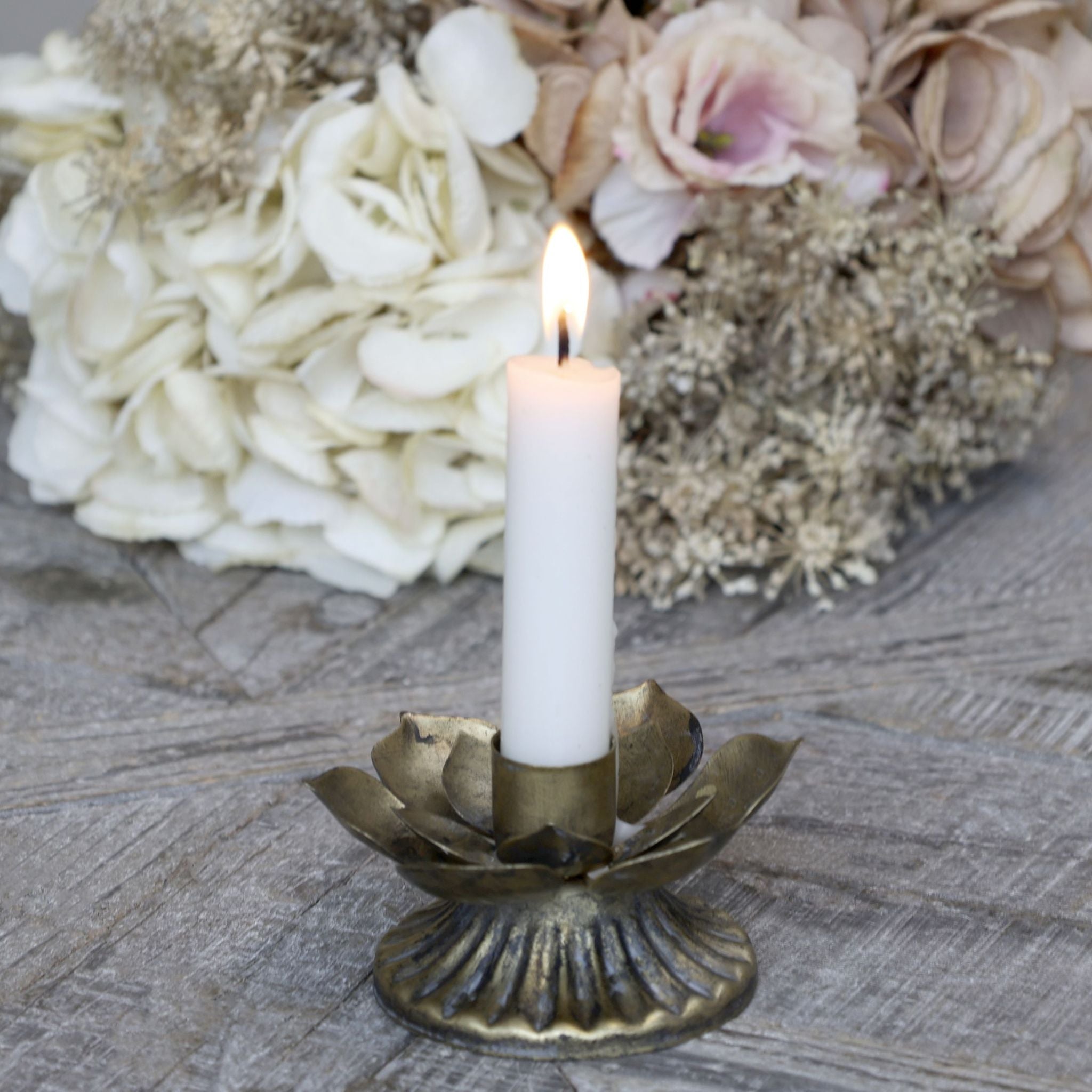 Elegant og romantisk lysestage fra Chic Antique i et smukt messinglook.