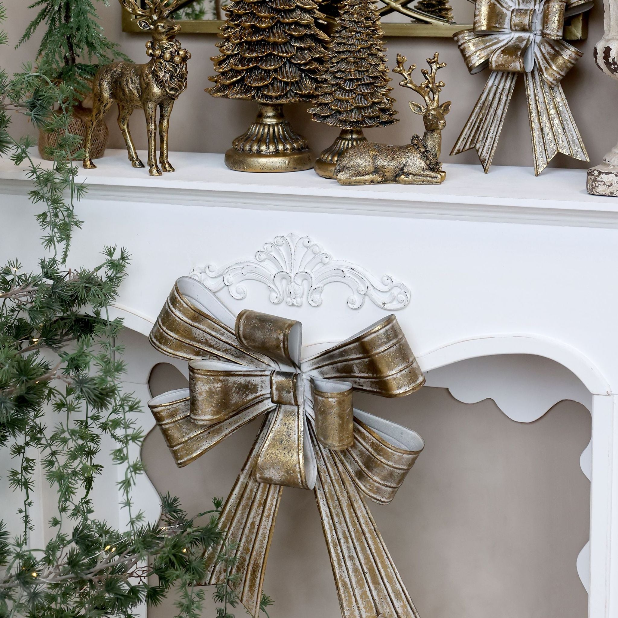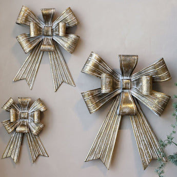 Tilføj et strejf af tidløs elegante til din juleudsmykning med disse smukke metal sløjfer. Den dekorative sløjfe har et antikt messing finish, der giver den et klassisk og stilfuldt udtryk.