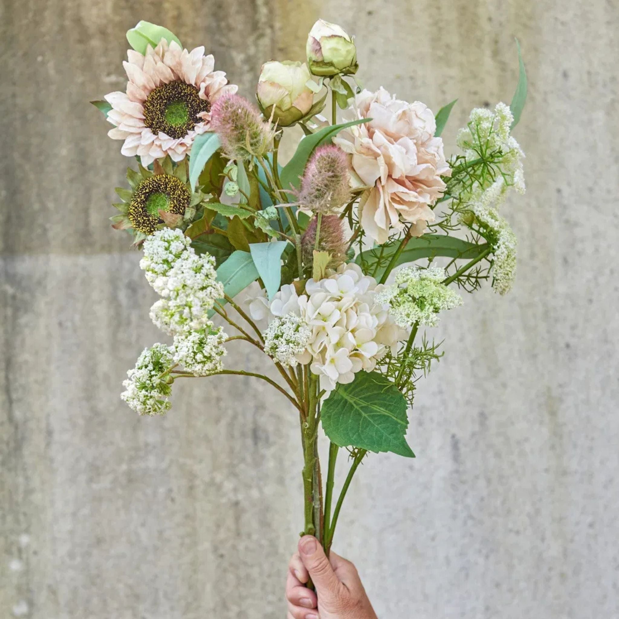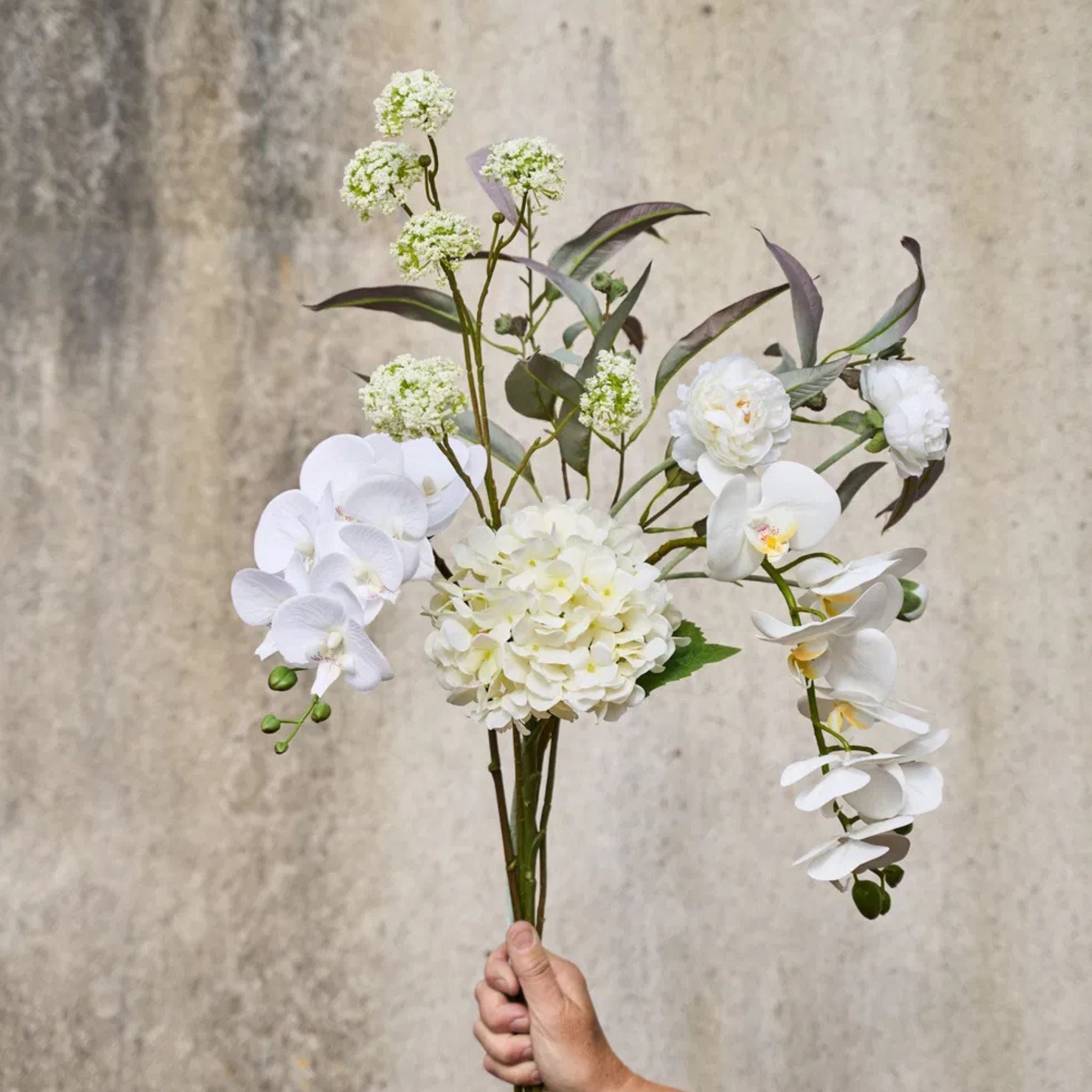 Tilføj fylde og elegance til dine dekorationer med en naturtro kunstig hortensia stilk på 48 cm, der bringer et smukt og vedvarende blomsterudtryk ind i hjemmet.