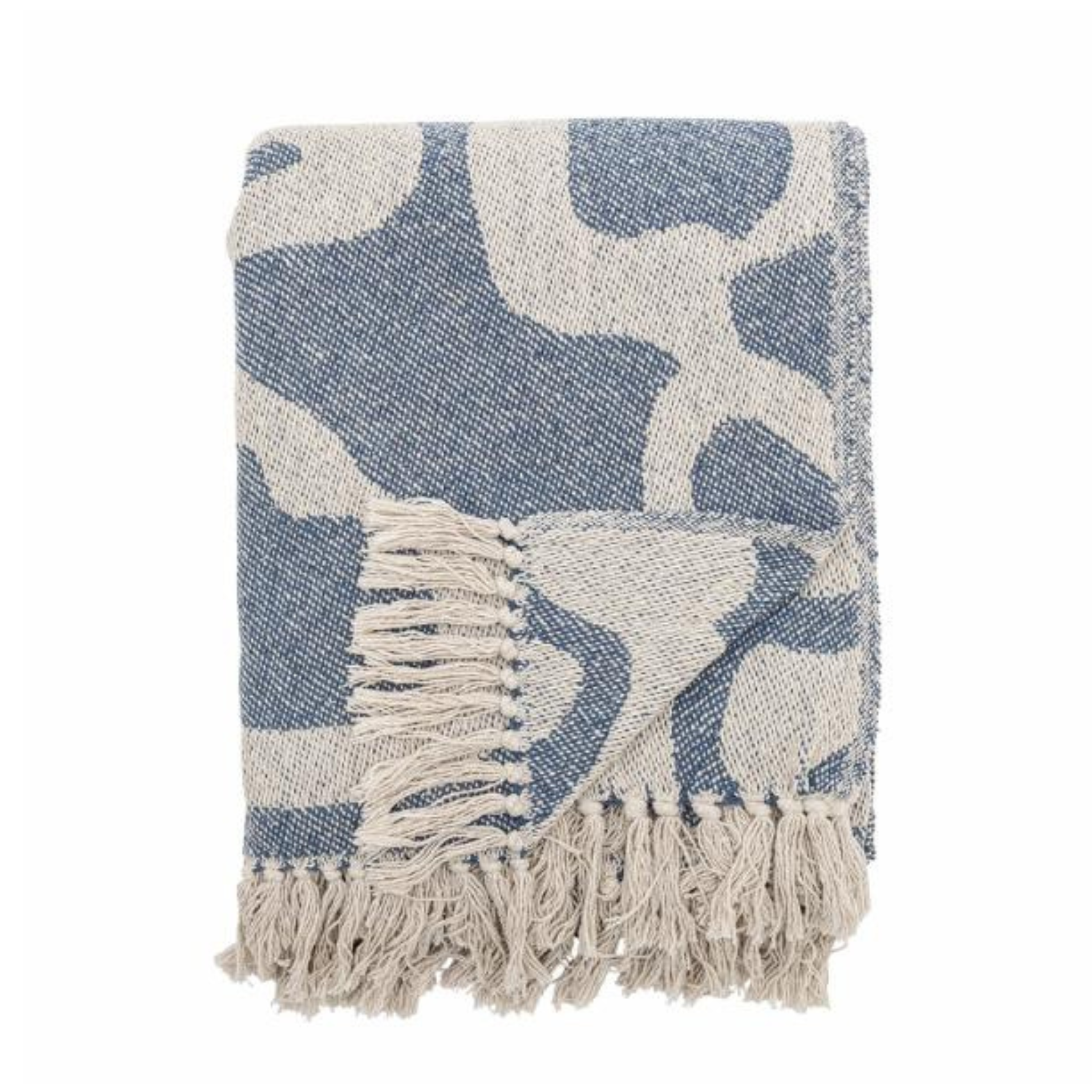 De fine frynser langs kanterne giver et hyggeligt udtryk. Perfekt som varm ledsager i sofaen eller som dekorativ detalje i indretningen.