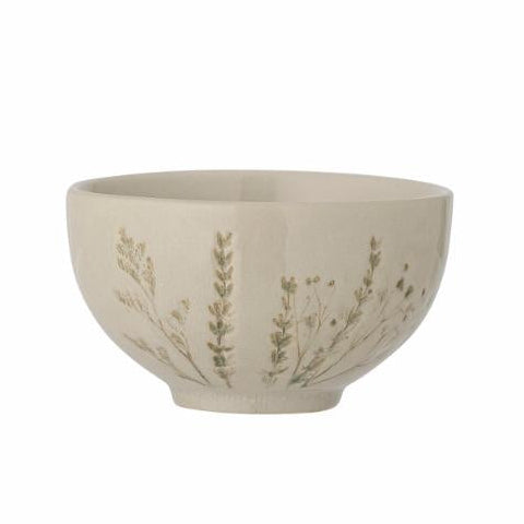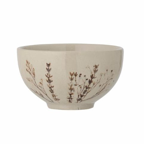 Smuk stentøjsskål med et flot, håndmalet blomstermotiv trykt på sin krakelerede glasur.